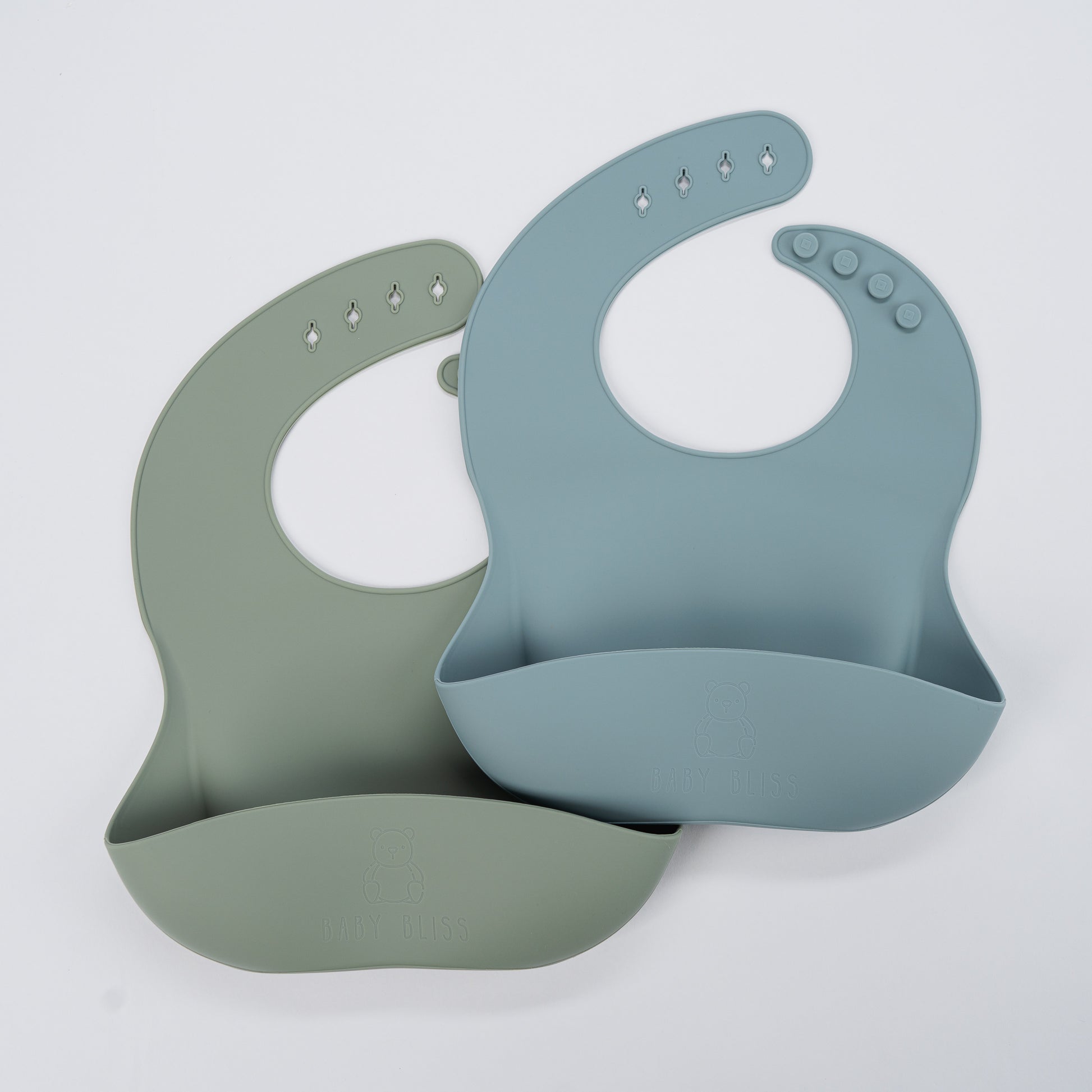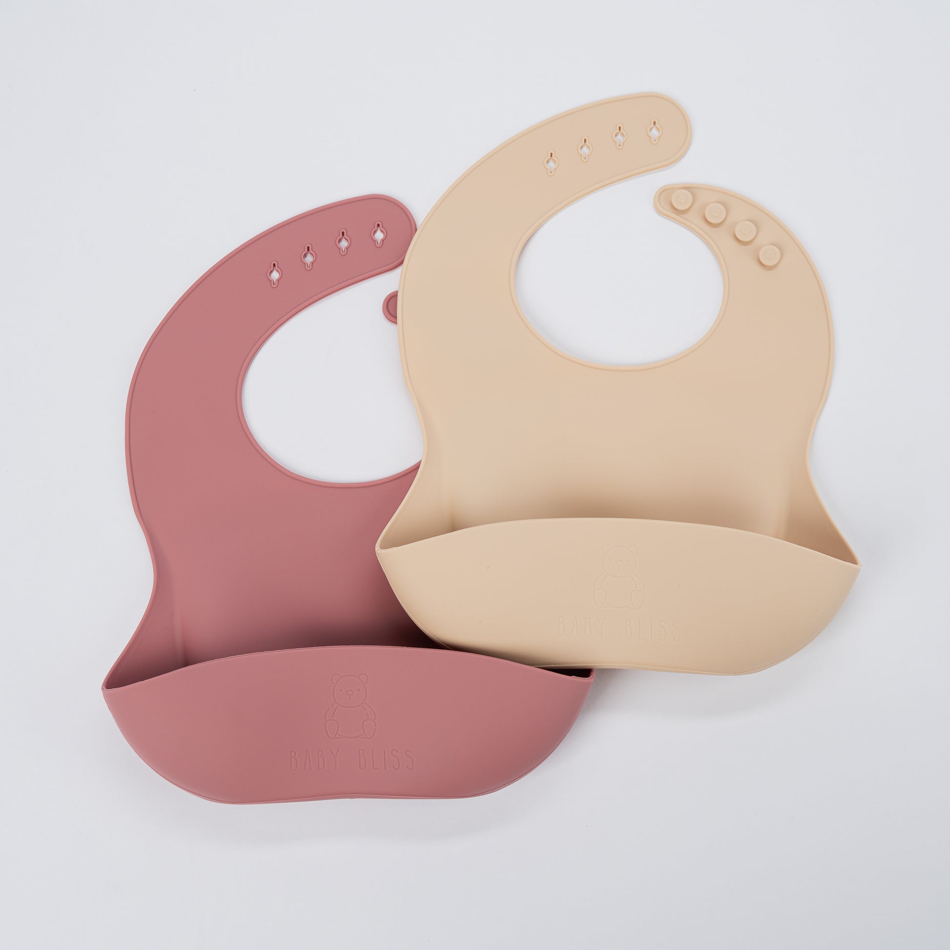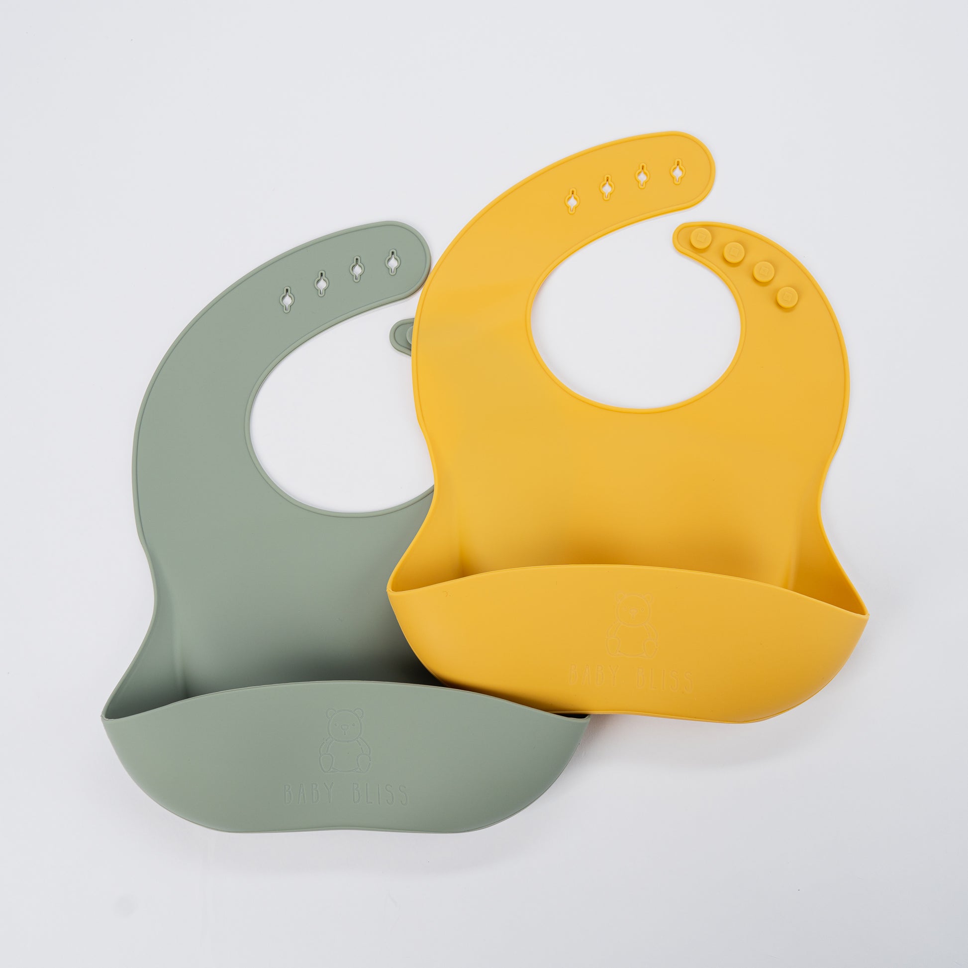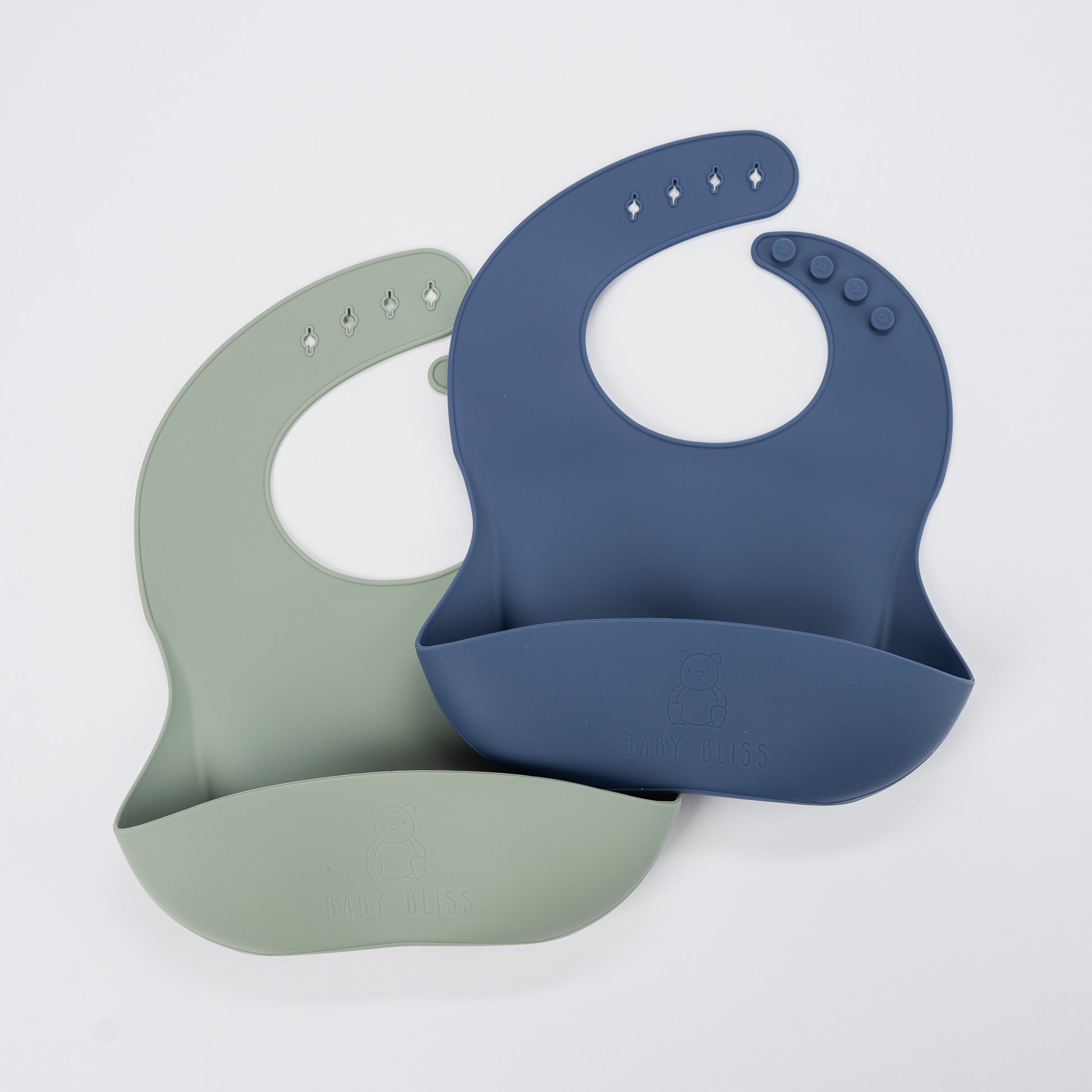 Baby Bliss Silicone Bibs (Set of 2) – Food Grade, Easy to Clean & Mess-Free Mealtime Protection