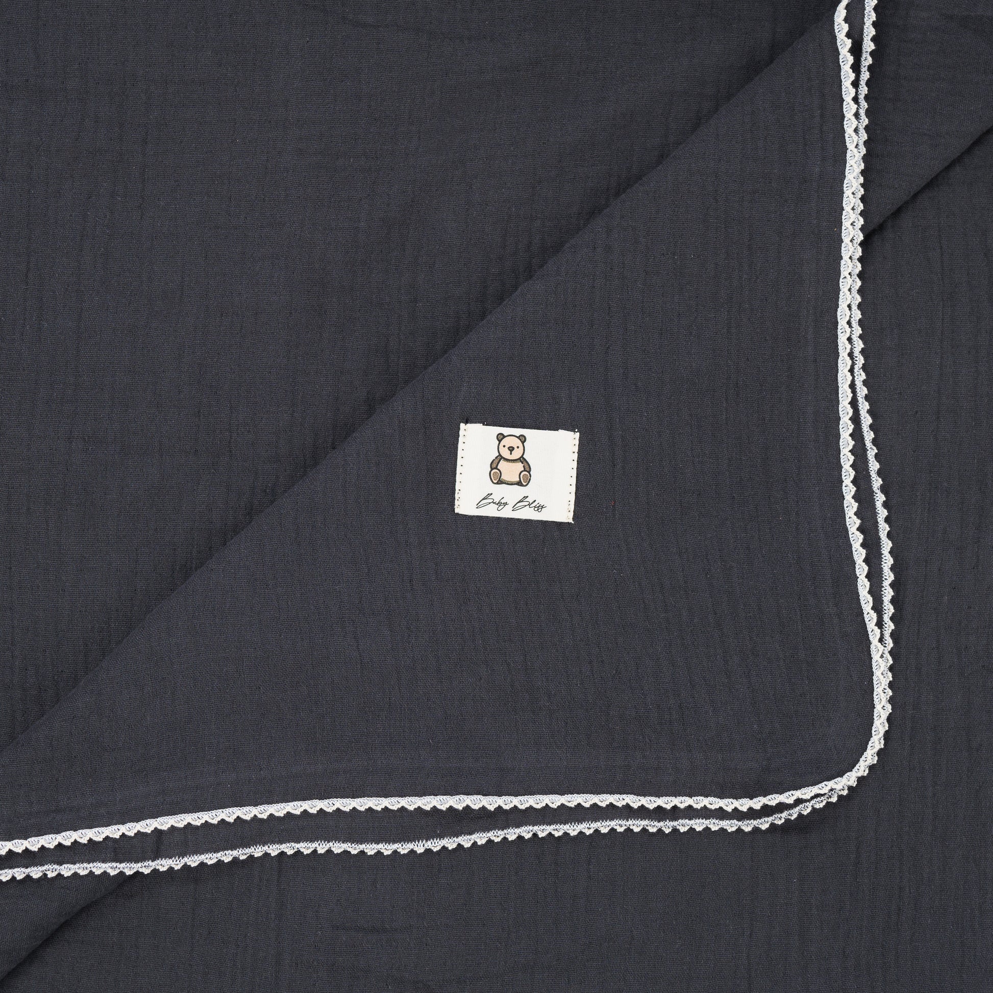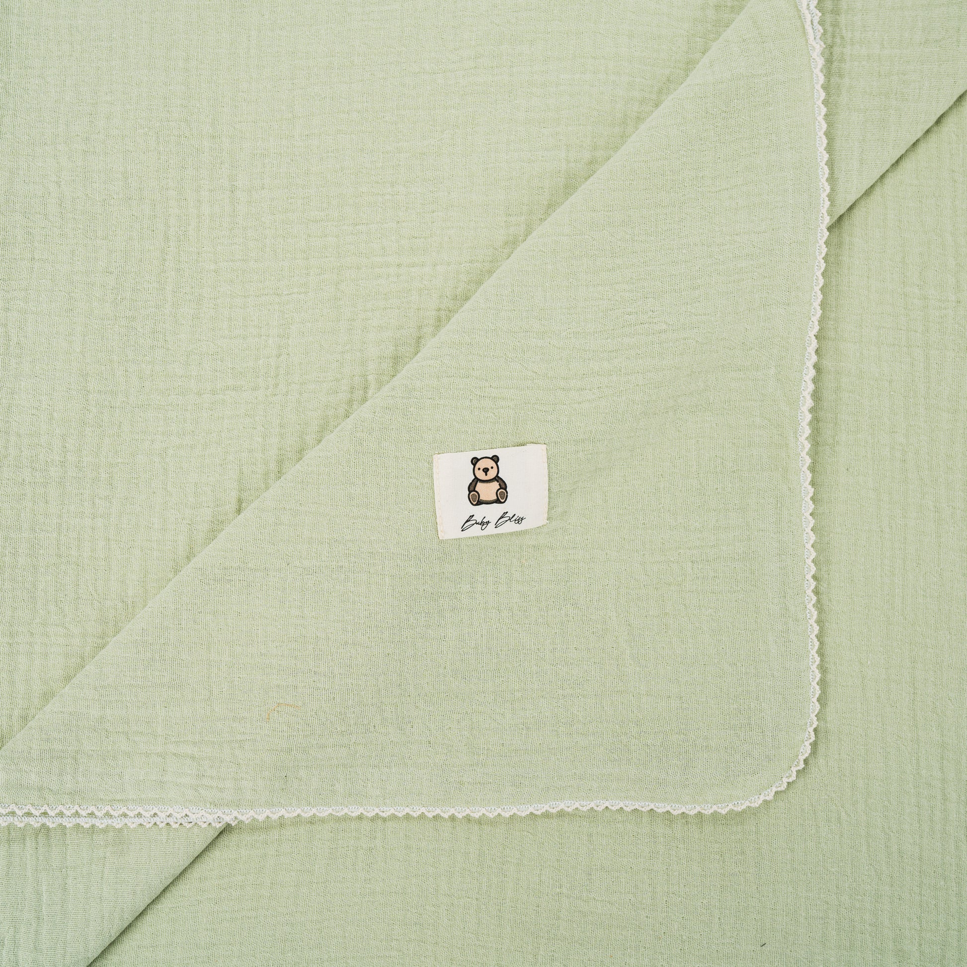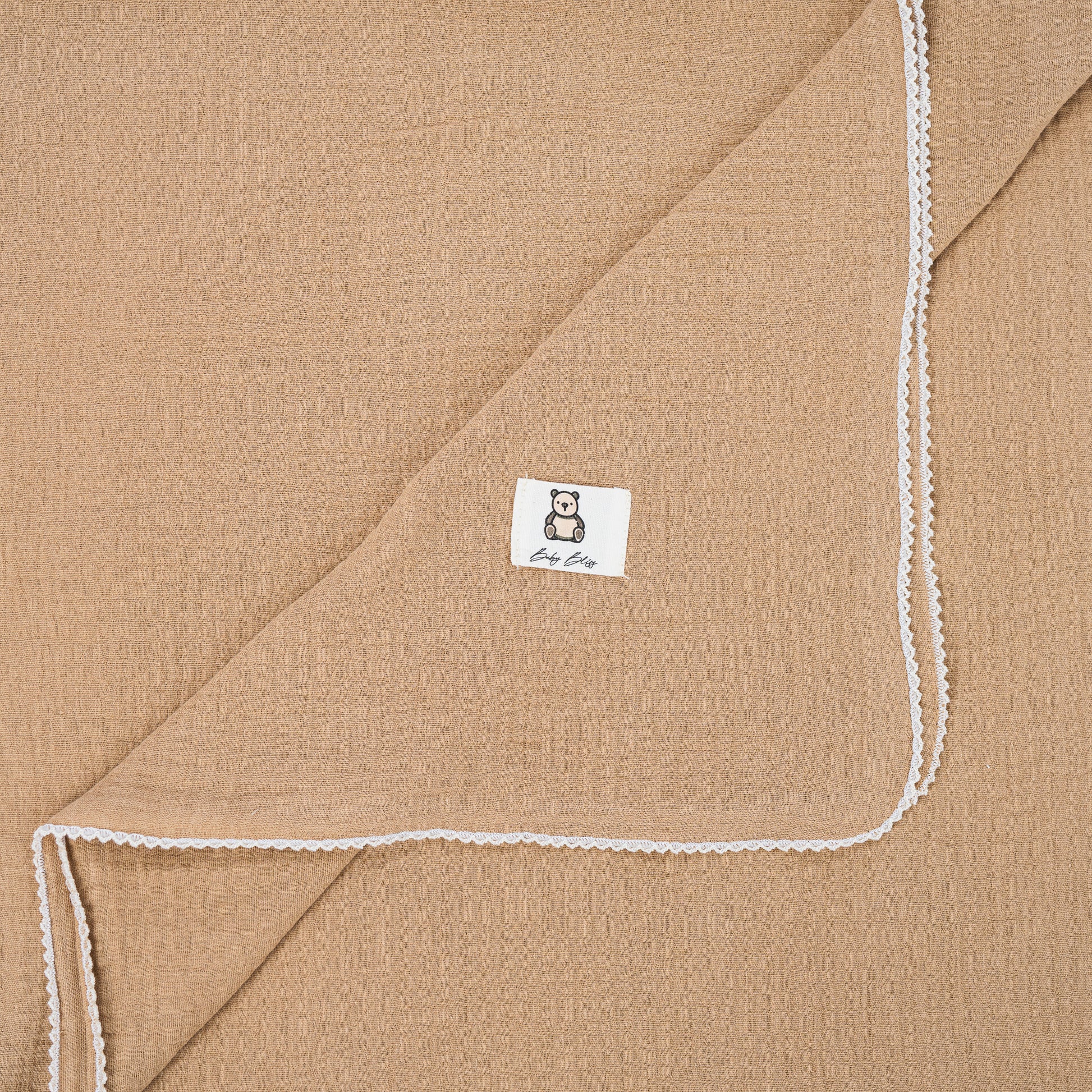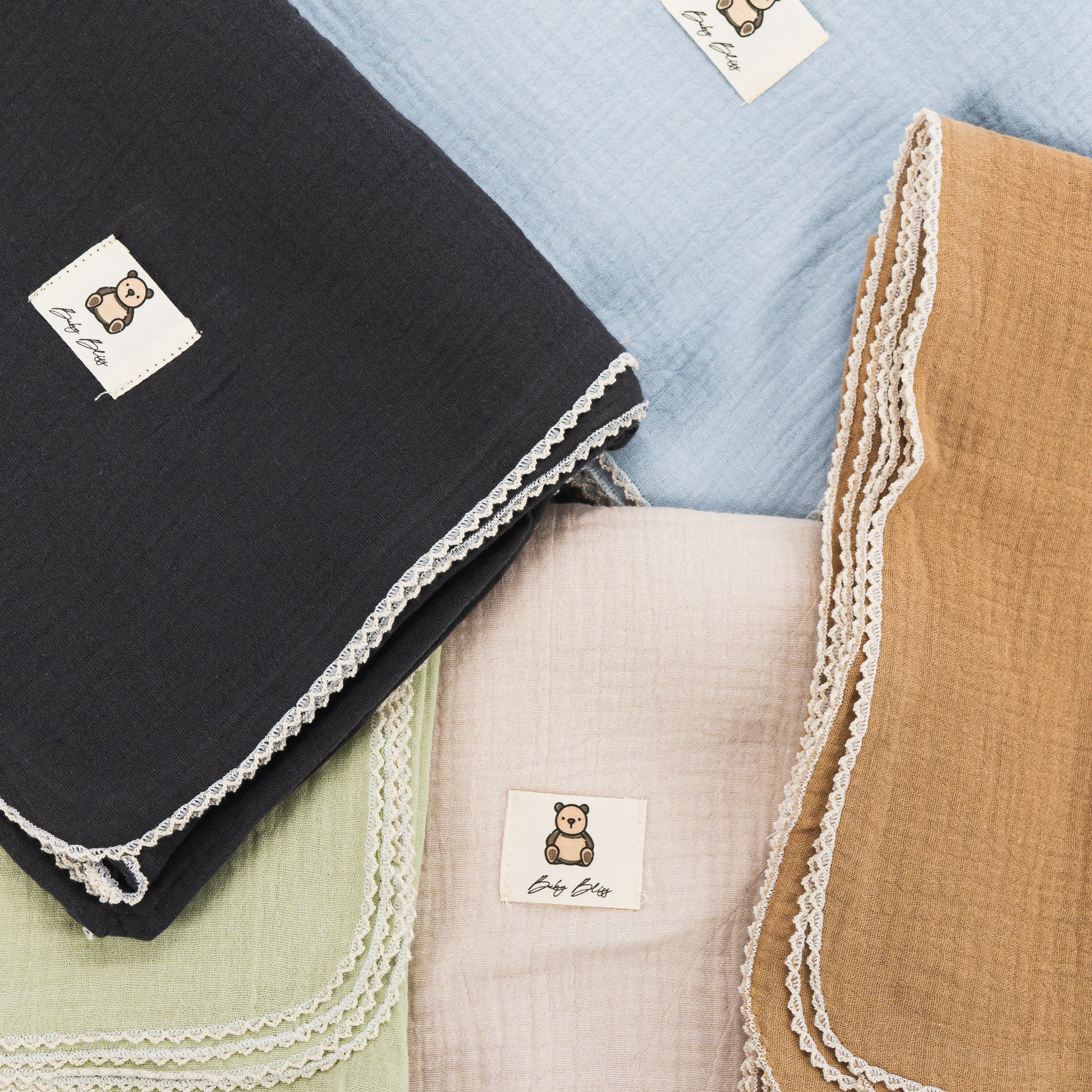 Crepe Cotton Receiving Blanket – Soft 2-Layer Swaddle with Lace Trim
