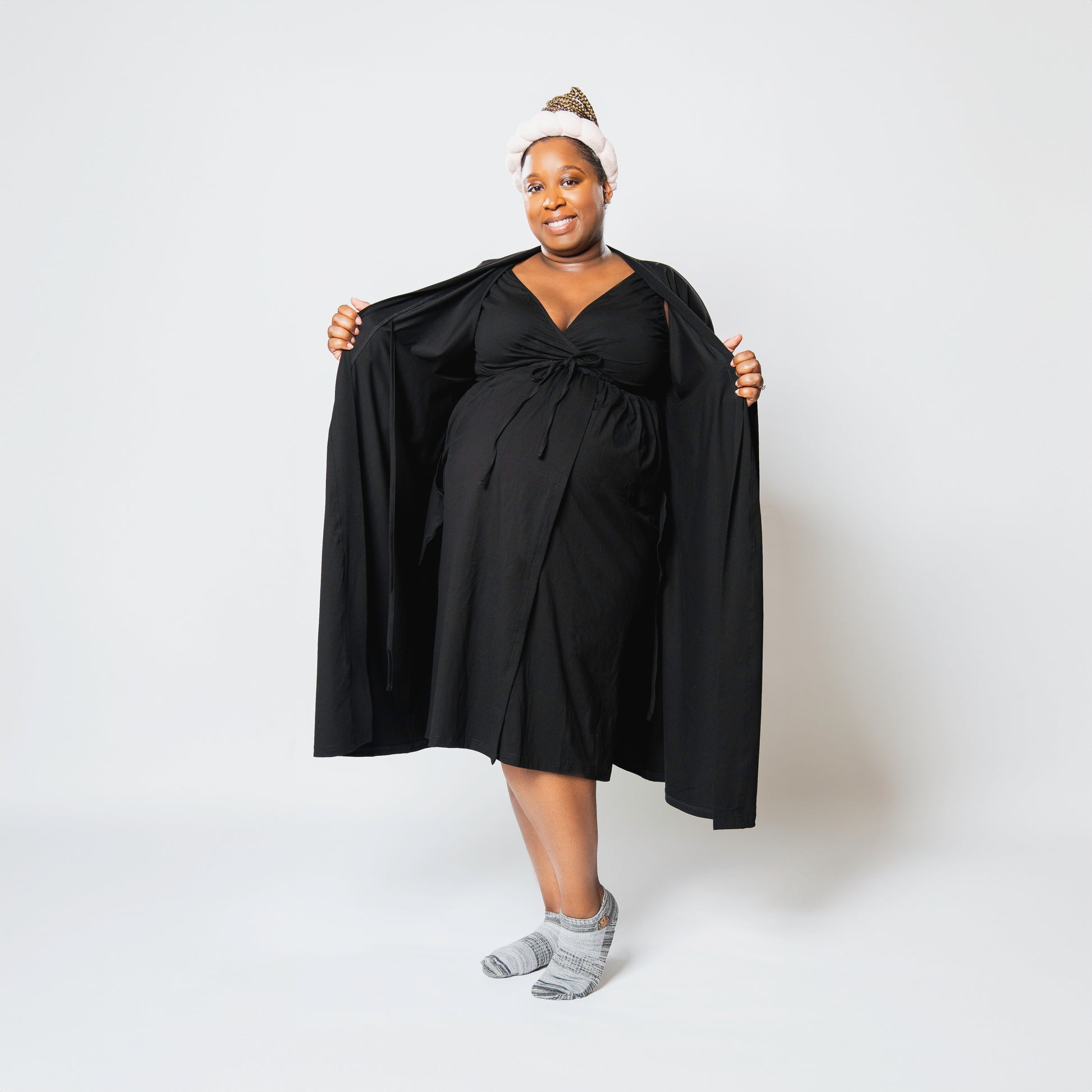 Hospital gowns are often stiff and impersonal—our 3-in-1 dress offers softness, coverage, and easy nursing access. Designed for labor, delivery, and beyond, it helps you feel like you during one of life’s biggest moments.